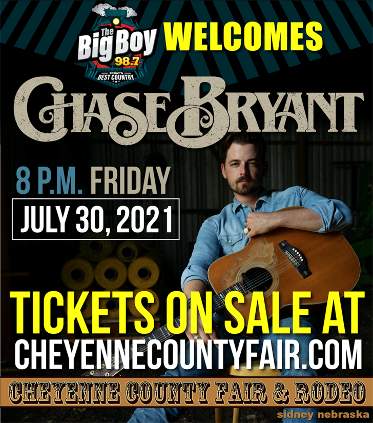 987 The Big Boy welcomes country music recording artist, Chase Bryant, to the Cheyenne County Fair and Rodeo in Sidney this summer!