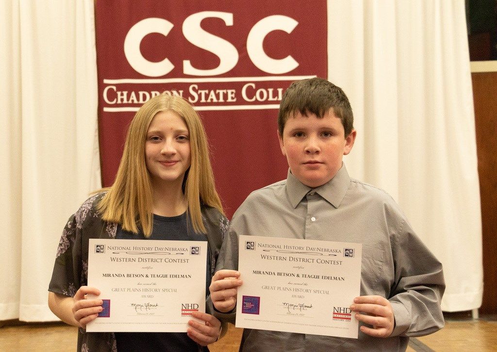1, Tyler Kaus of Chadron with Meyer v. Nebraska: Debate Over Bilingual Education; 2, Alexa Tollman of Crawford with The Battle to Save Fort Robinson’s History.