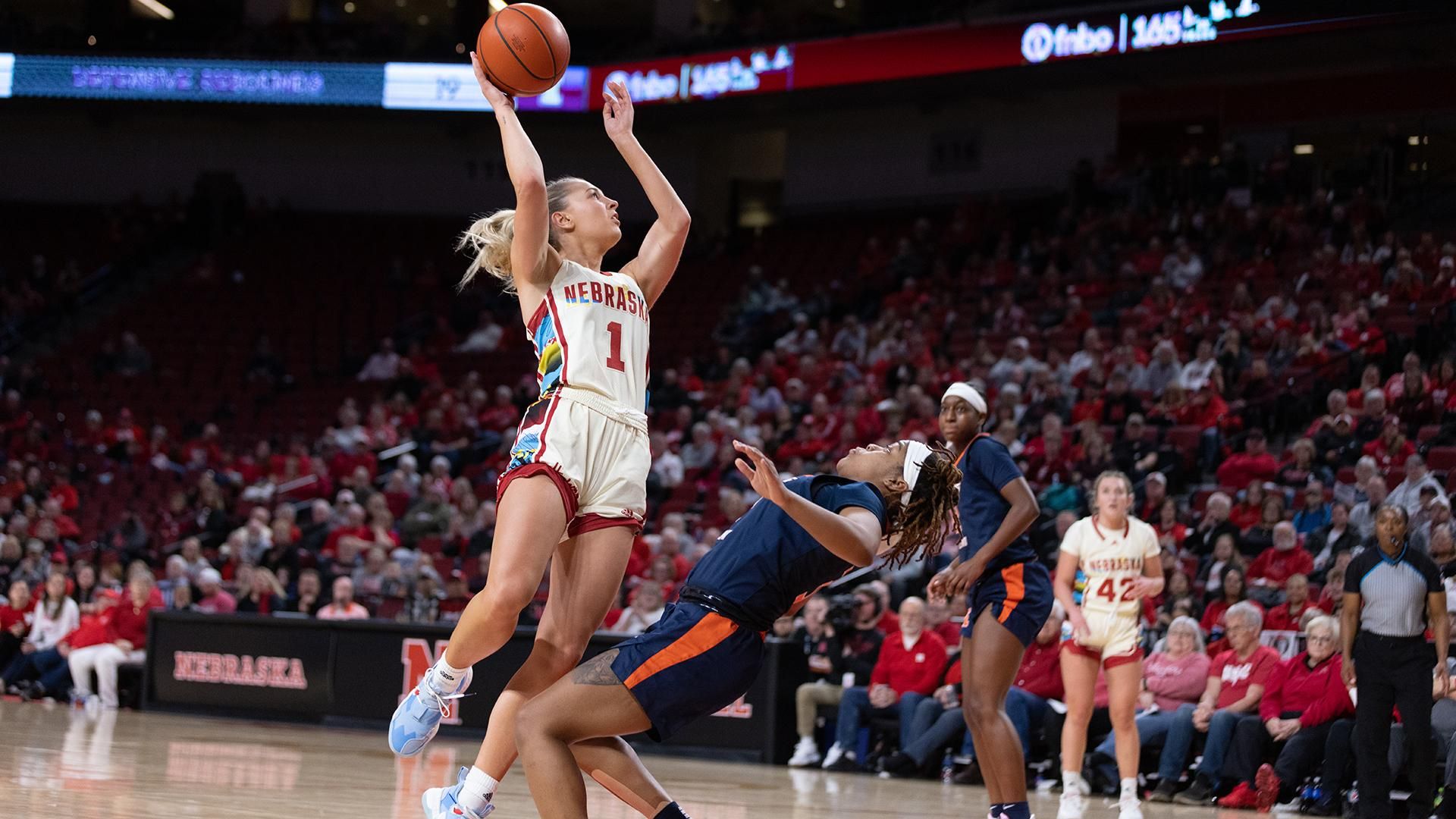 Nebraska worked its way to a 37-29 halftime behind big efforts inside from Markowski and Bourne. Markowski led the Big Red with 12 points and nine rebounds in the first half, while Bourne added 11 points, two boards and two steals. Bourne and Markowski combined for a trio of threes while also putting Illini starting posts Bostic and Brynn Shoup-Hill in foul trouble.