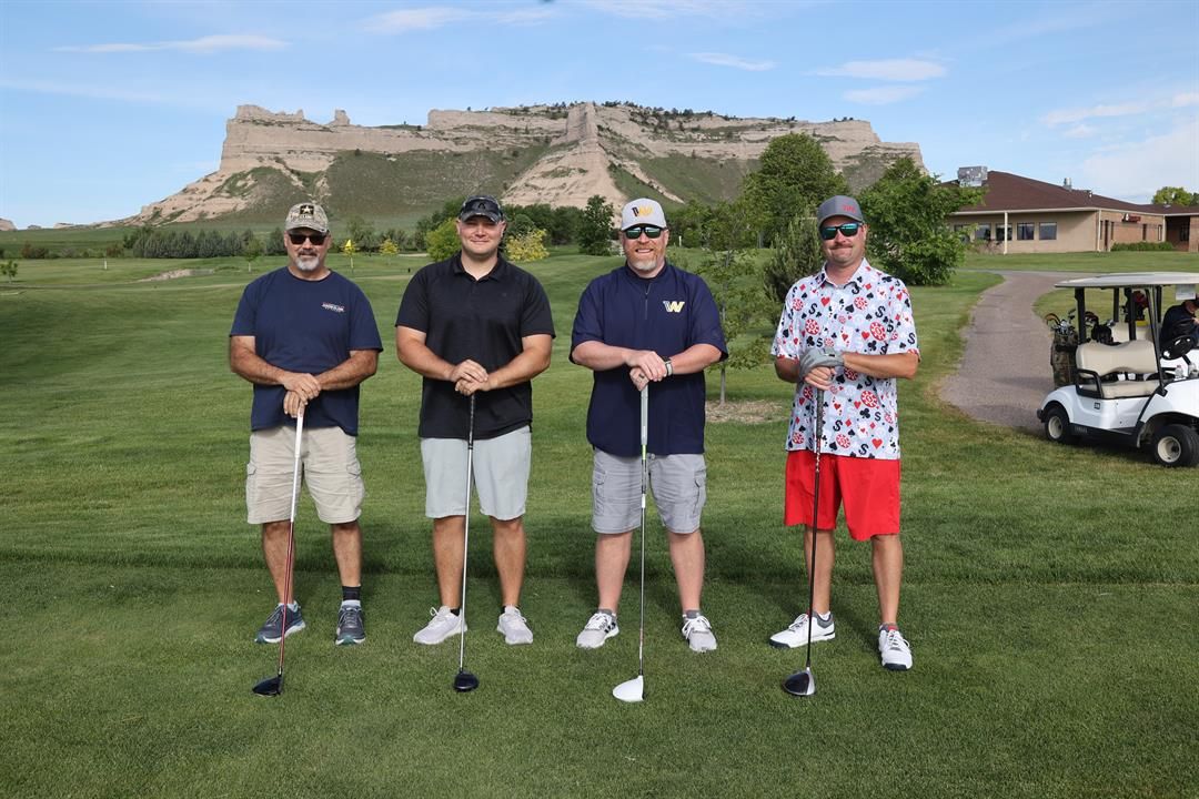 Saturday’s Cougar Golf Classic saw the FFJJ team earn the men’s overall title after barely holding off the second-place team of Wyoming Huskers by just eighth-tenths of a stroke for the championship of the annual Western Nebraska Community College athletic fundraiser.