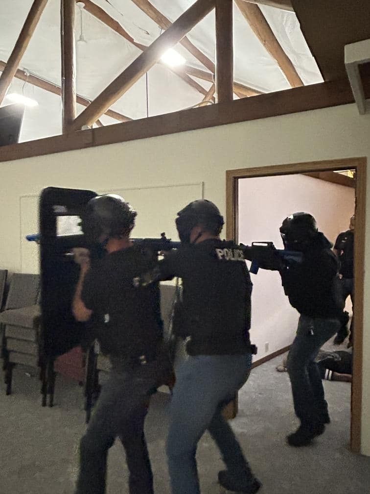 The training took place at the Evangelical Free Church where the teams participated in six scenarios for different types of events involving an active shooter that they may encounter.