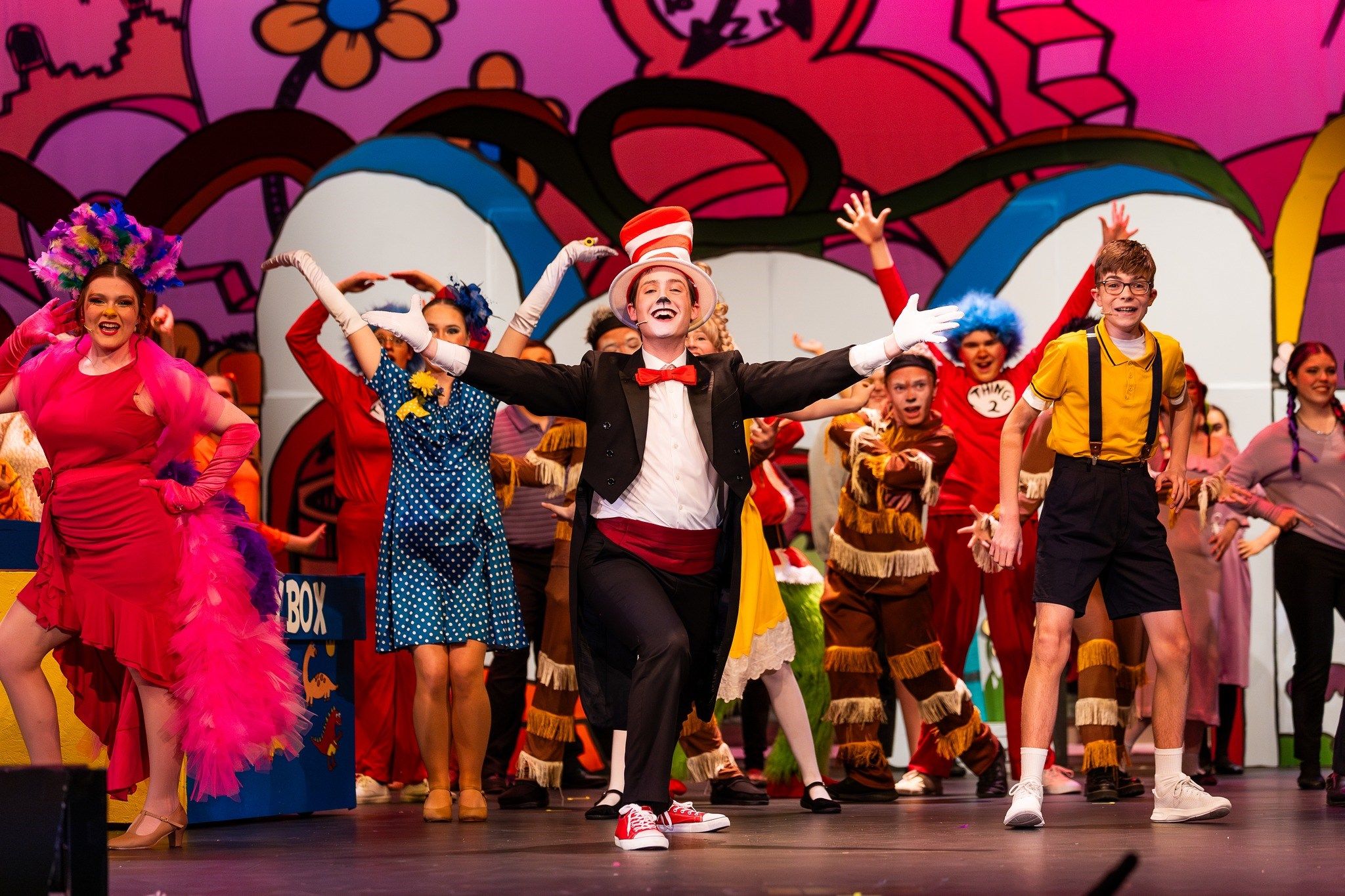 Two students received individual accolades for their leading roles: Zane Holoubeck, for his performance as The Cat in the Hat Ava Gensler, for her portrayal of Mayzie LaBird Both were named recipients of the Outstanding Performance in a Lead Role award.