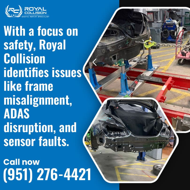 Today’s vehicles depend heavily on advanced safety systems. After even minor accidents, ADAS features like lane assist, parking sensors, and emergency braking can malfunction. Royal Collision offers ADAS recalibration as part of its vehicle repair process in Riverside, using advanced tools and calibration systems. Technicians recalibrate sensors and cameras to match manufacturer parameters. This step is key for certified auto body repair, especially on modern vehicles. Proper alignment not only supports safety but also reduces the chance of dashboard warning lights and performance errors after repairs. Royal Collision follows OEM calibration standards using advanced diagnostic tools to make sure that all ADAS features are realigned for proper function. Accurate ADAS recalibration helps restore full system reliability and prevents future driver assistance issues.